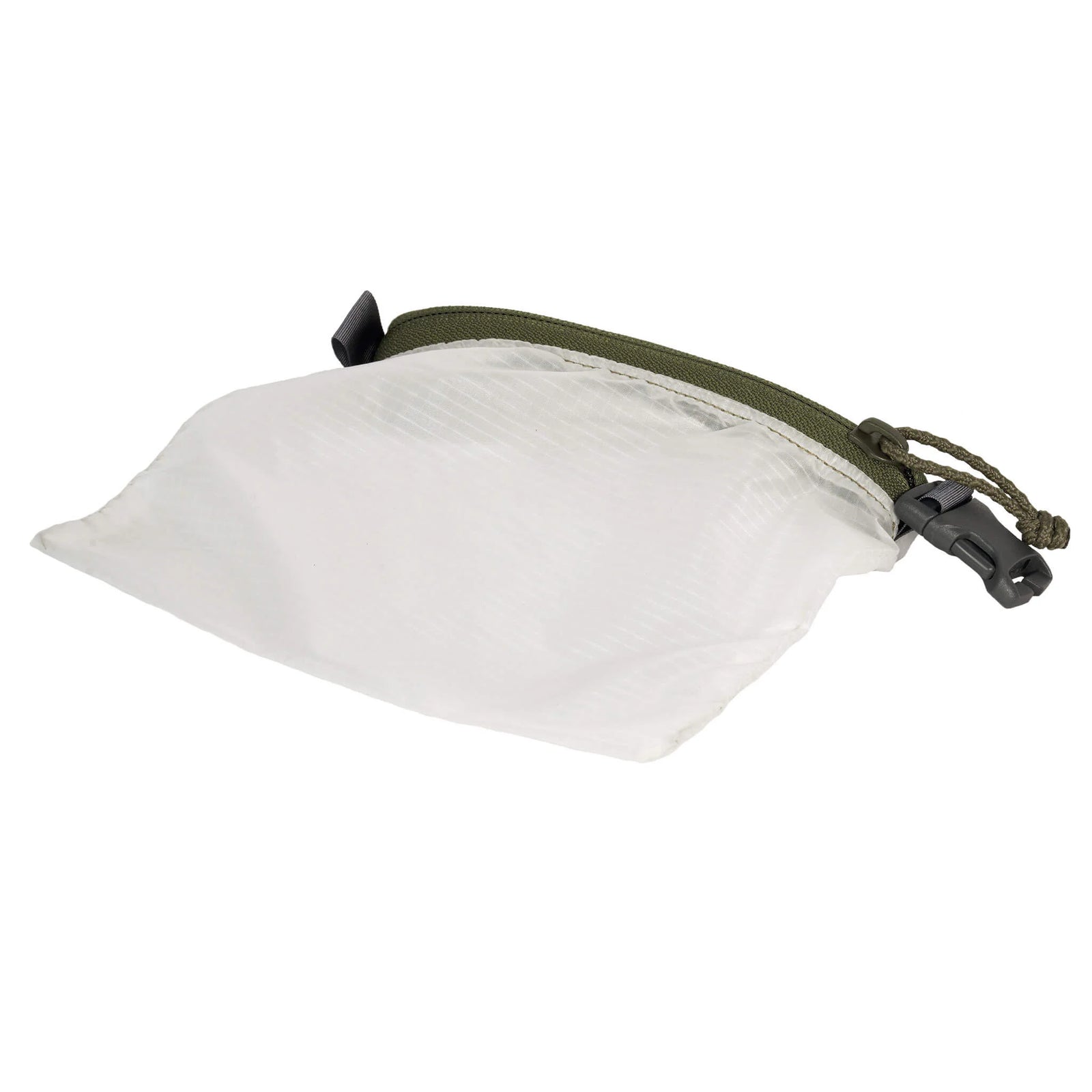 Built with a translucent white 30d Silnylon material that offers excellent water-resistance and allows some visibility for the pocket's contents.
